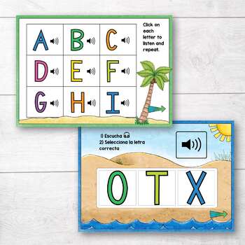 Learn the letters of the alphabet in Spanish with listening, matching, and spelling activities. Includes four sections: