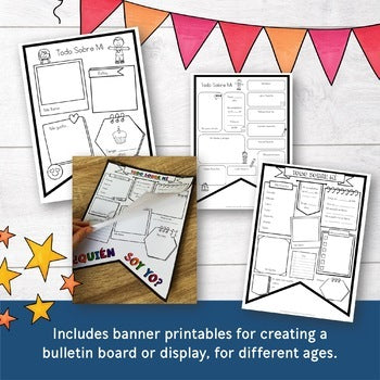 - 4 Todo sobre mí Banner Options for a variety of ages/levels, for creating a bulletin board or hallway display