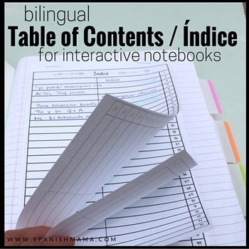Bilingual Interactive Notebook Table of Contents / Índice