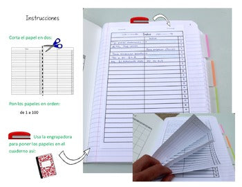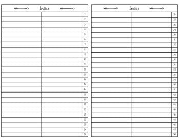 This Table of Contents/Índice insert is designed to be very simple: print out your favorite design, cut the paper in two, and staple into the notebook. Done!