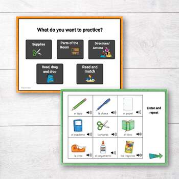Practice 47 terms for classroom objects and classroom directions in Spanish with these interactive, self-checking Boom Cards!