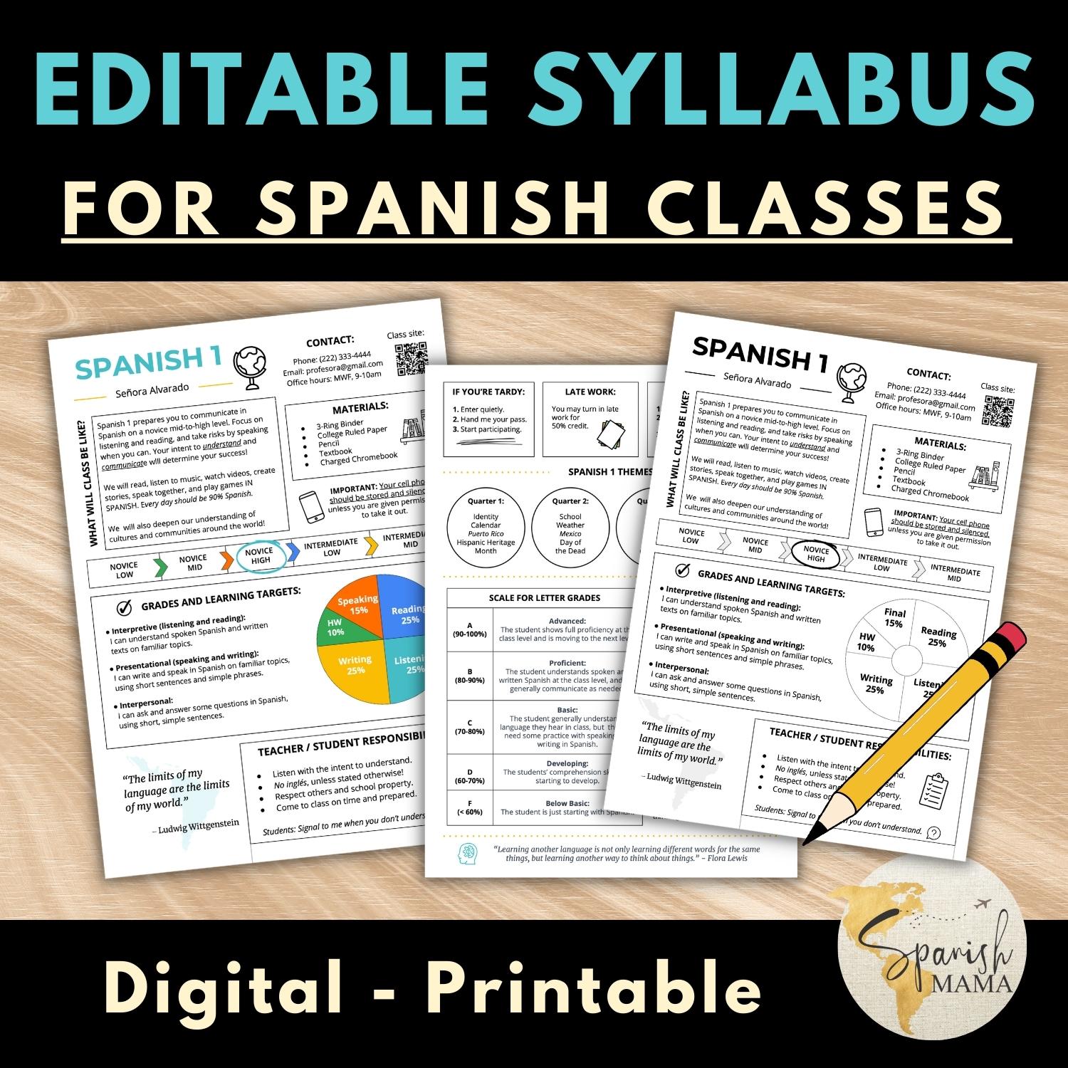 You can change the fonts, move the boxes, delete, or add text and images as needed. Both black-and-white and colored versions are included. The syllabus is two sheets.