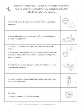 The Wind and the Sun, told in picture-format in Spanish with activities and ideas for teaching. (See just the online story for free, along with 9 other fables.) The fable is retold in Novice-Low to Novice-Mid Spanish, using high-frequency vocabulary and structures. These stories are a great resource for providing comprehensible input in your Spanish classes!