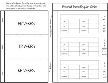 French Regular Present Tense Verbs Interactive Notebook Flapbook