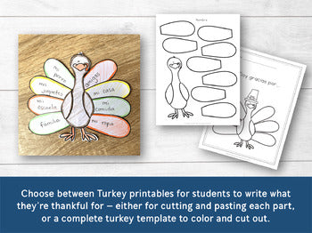 Perfect for a fall bulletin board for Thanksgiving! This traditional turkey craft gives even beginner students the chance to record what they are thankful for and create a colorful display together.