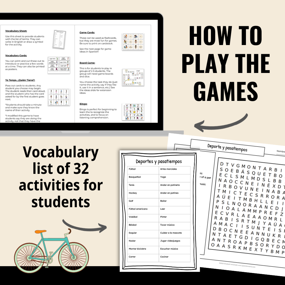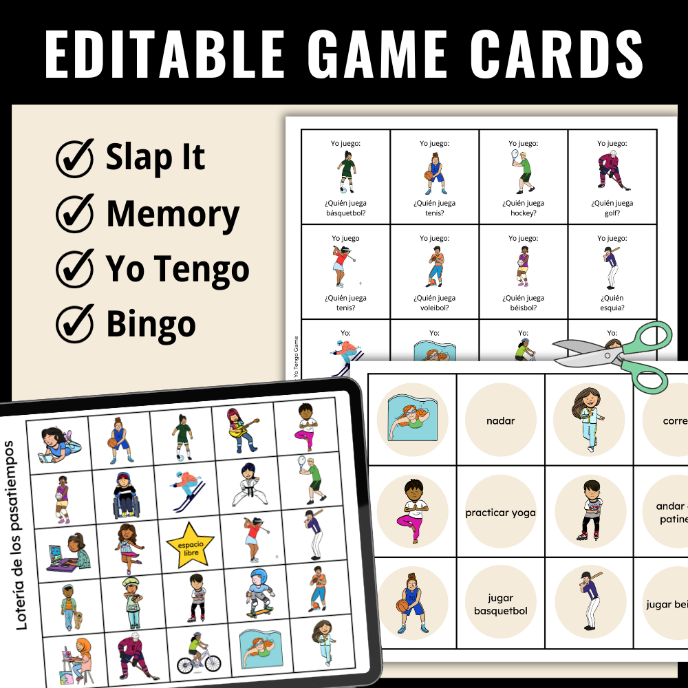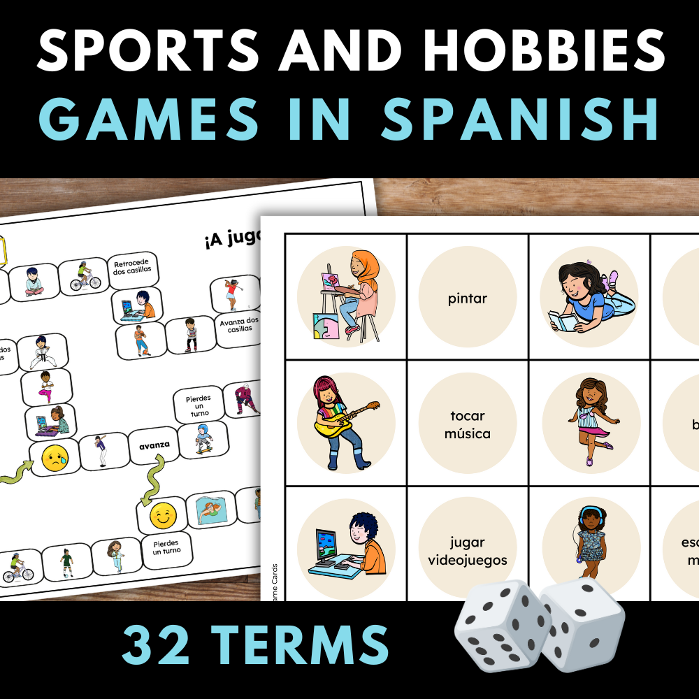 Learn common sports and hobbies in Spanish with this fun, hands-on game pack! Use these games to go from listening and recognizing the terms, to speaking in small groups.