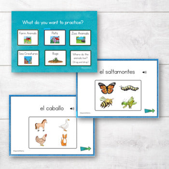 Pets, Bugs, Zoo, Ocean, and Farm Animals Boom Cards in Spanish